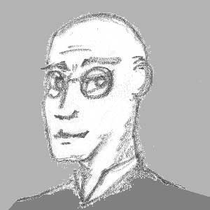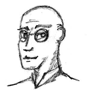 somewhat thin yet agile, deep voice. | Clothing: Circular wired-rimmed spectacles. Crisp, black three-piece suit, black shirt and
